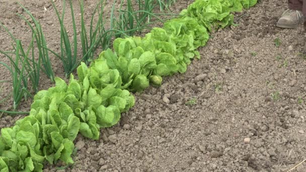 Farmer Hoeing Ground Weeds From Lettuce Vegetable Garden Gardening