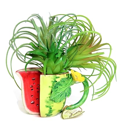Unique Design Ceramic Watermelon Miniatures Fairy Garden Ceramic Pot Faux Air Plant Succulent Cactus Tillandsia Planter Holder Indoor Outdoor Home