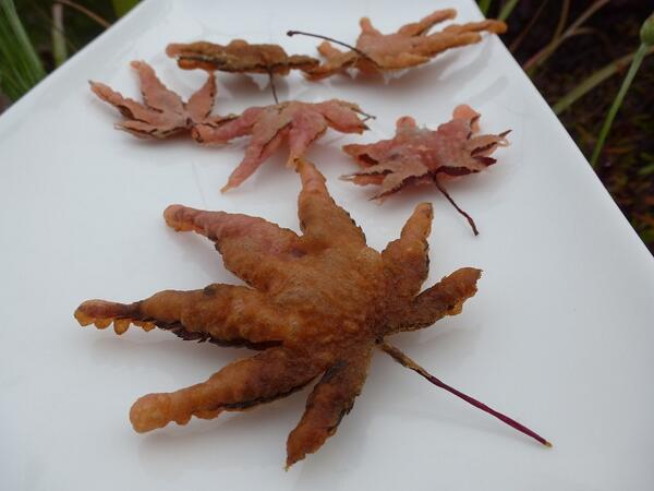 Heat vegetable oil in a deep pan to 350f 175c. Place oil in a medium frying pan to no more than 1 deep and heat on a medium flame. Its not really cleaf who first came up with the idea to fry a japanese maple leaf in the traditional tempura style though i assume ancient people determined that momiji the name for maple in japanese were safe to eat quite a long time ago.